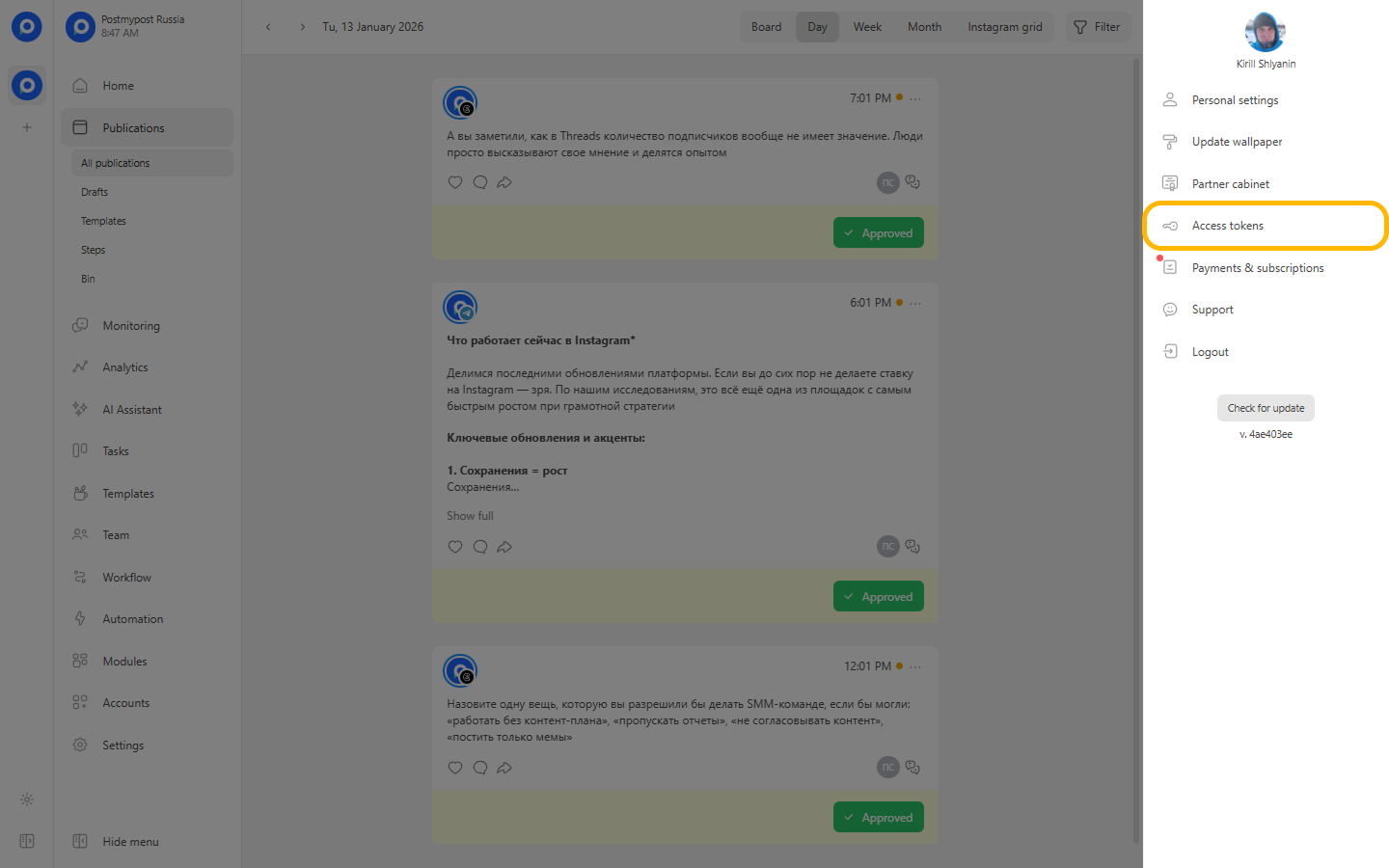 Everything is ready! Activate and run the workflow. If configured correctly, the publication with status 4 will be added to the "Drafts" section of your project. You will be able to view, edit, and publish the material.