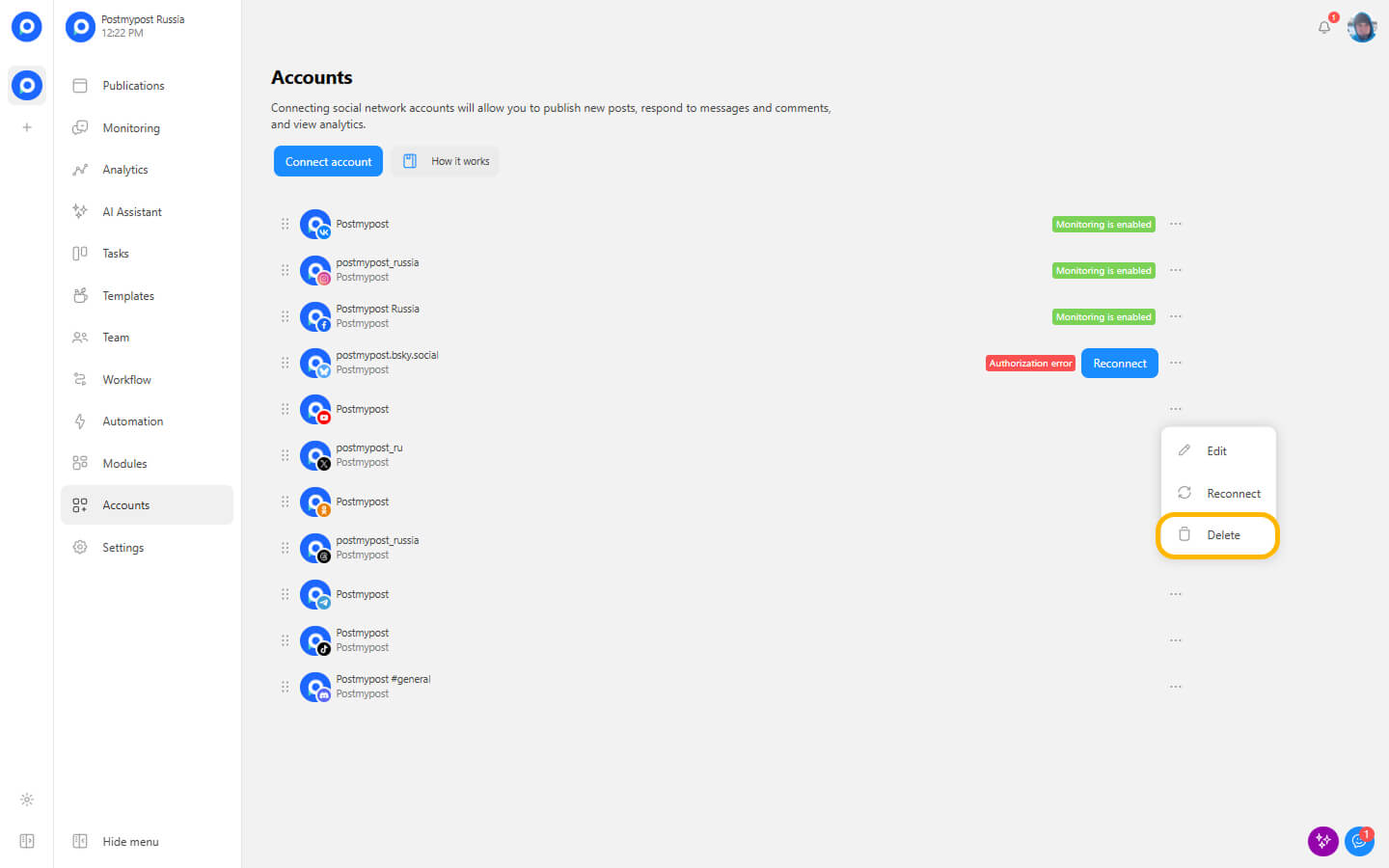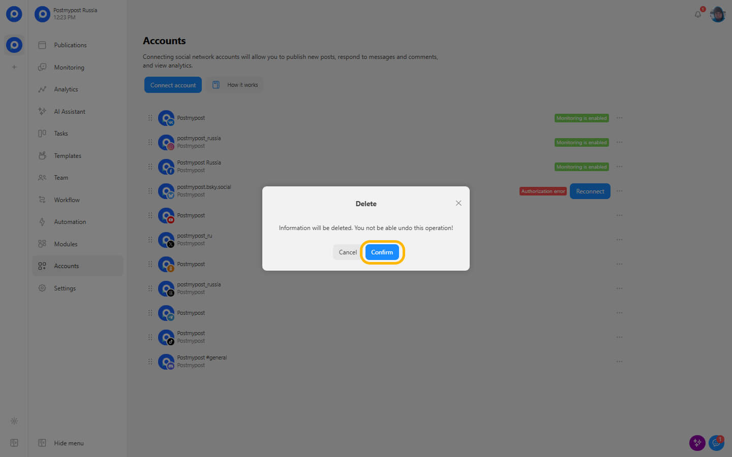 This action will permanently remove the account from your project. Please note that this operation cannot be undone.