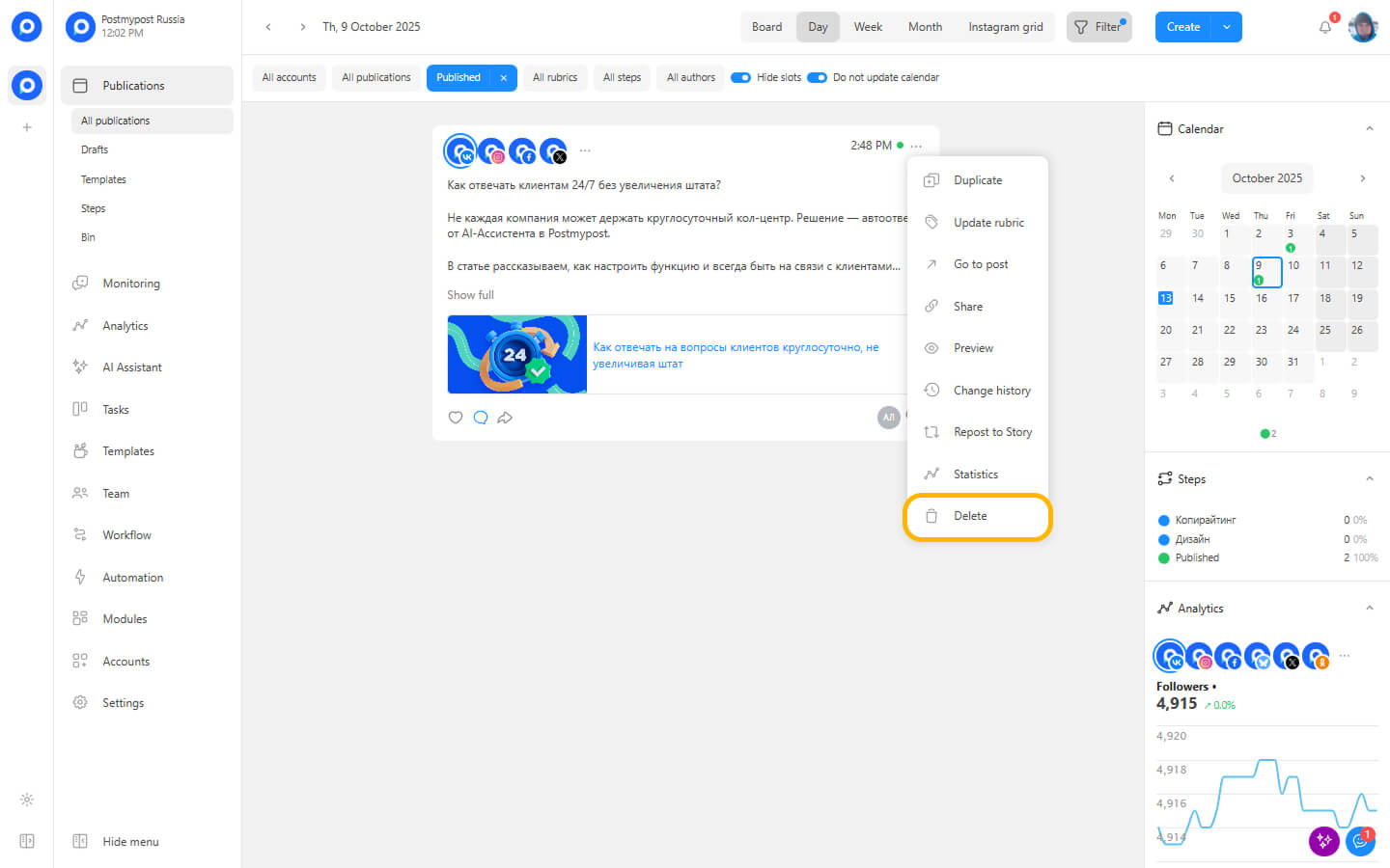 This guide describes how to delete a published or scheduled post in the service.