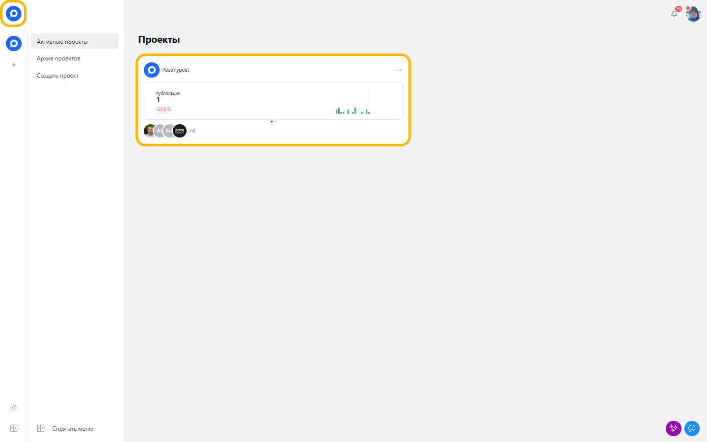 Postmypost жобалармен жұмыс істейді — бұл брендтерді, клиенттерді немесе бағыттарды бөлуге ыңғайлы тәсіл.