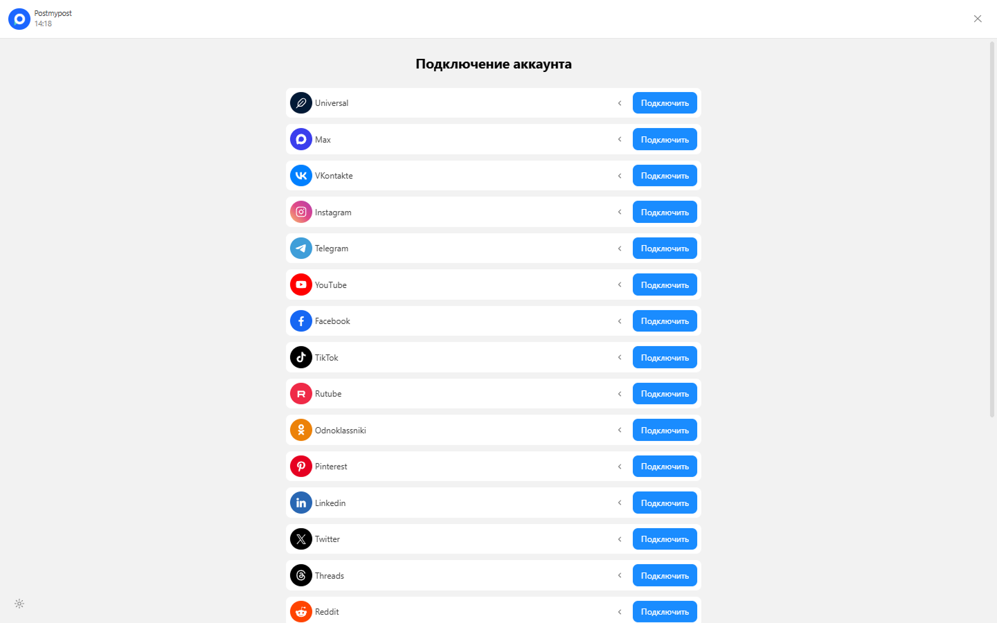 - Тіркелу бетіне өтіңіз: https://app.postmypost.io/signup