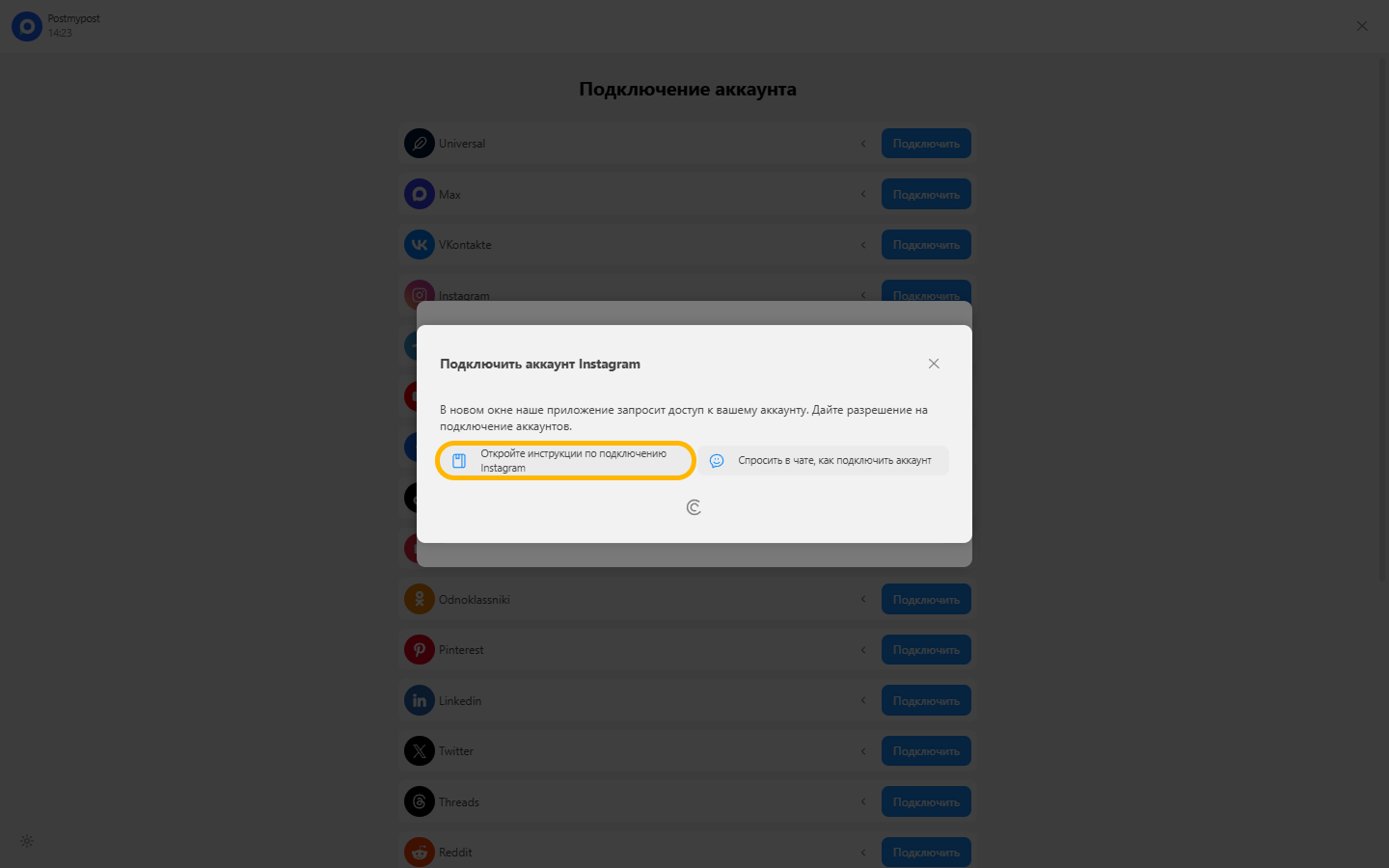 - Кіру бетіне өтіңіз: https://app.postmypost.io/login
