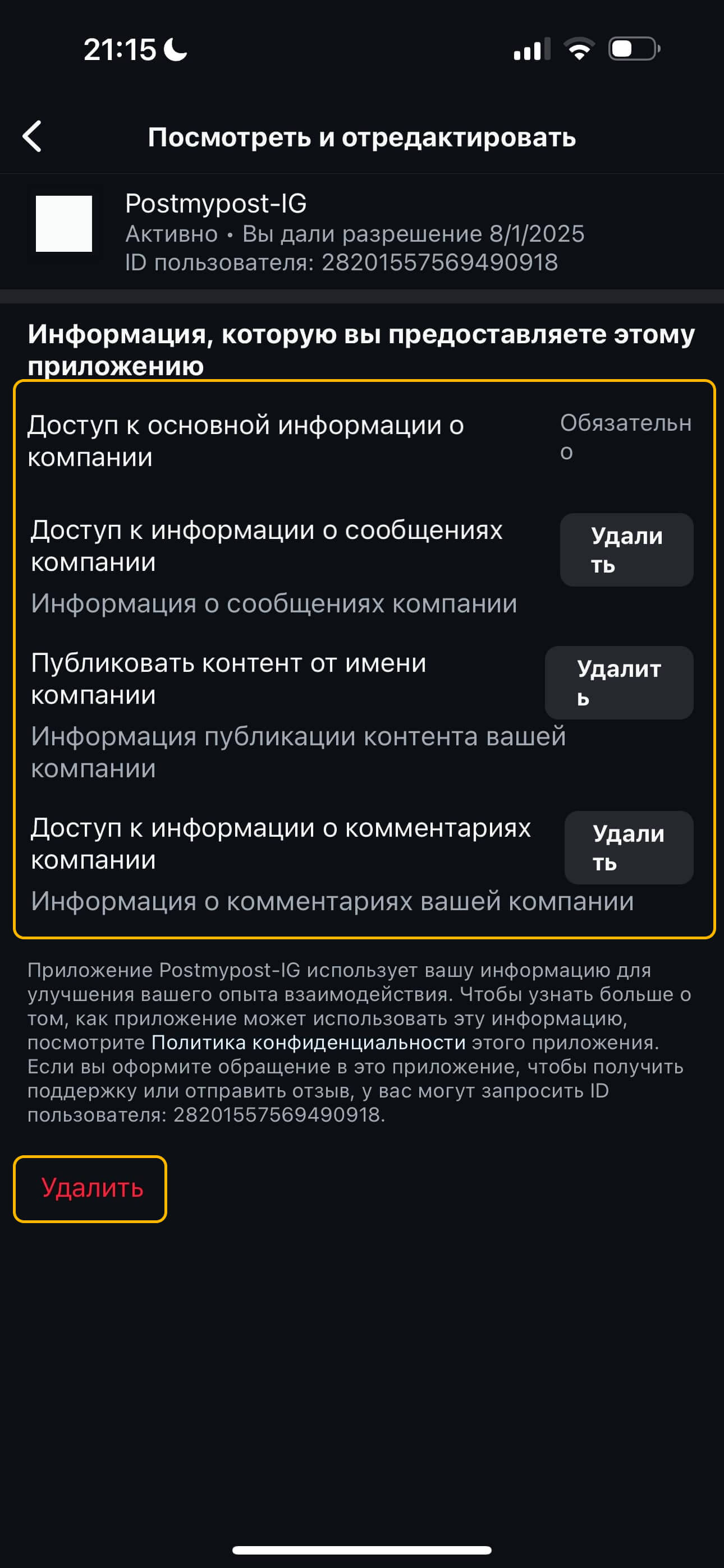 Instagram-нан postmypost бағдарламасын қалай жоюға болады