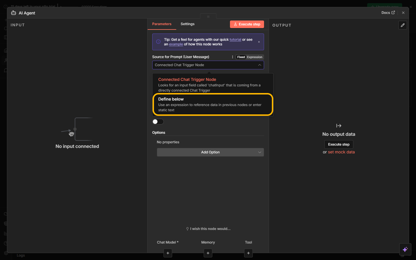 - Source for Prompt өрісінде Define below мәнін қойыңыз, өз промптыңызды жасау үшін.