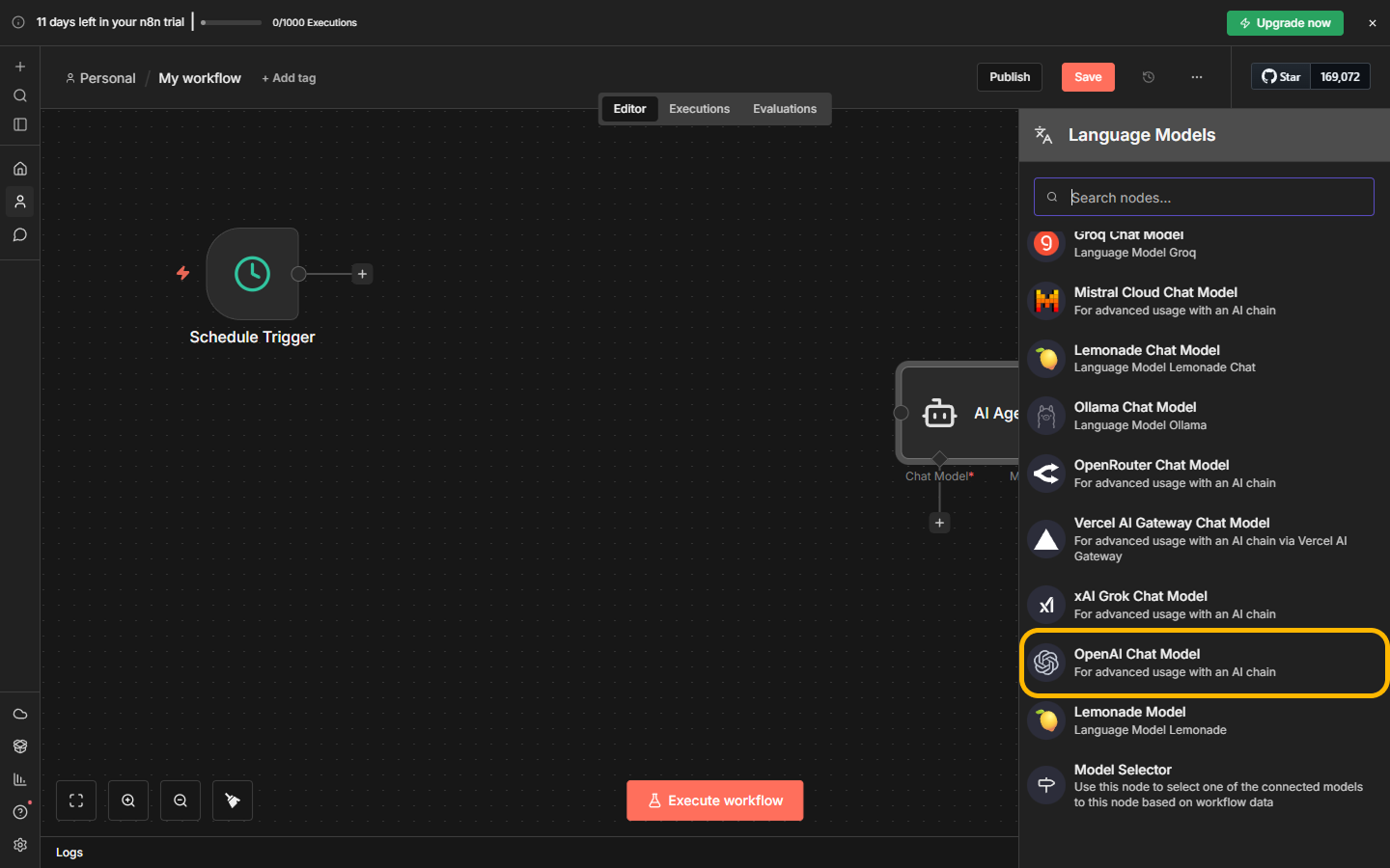 Бұл n8n-де workflow баптауының мысалы, ол қалай нейрон желісі арқылы контентті автоматты түрде жасауға және оны Postmypost-ке жіберуге болатынын көрсетеді. Нұсқаулық жоспарлау, AI агентпен жұмыс, OpenAI API және жариялауларды Postmypost жобасына жіберіп, оны одан әрі өңдеу және жариялау бойынша жұмыс істеуді демонстрациялайды.