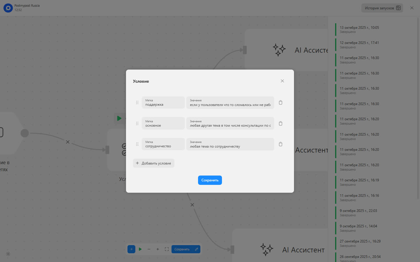Postmypost-те Автоматтандыру жасауға болады — адамның қатысуынсыз орындалатын іс-әрекеттер тізбегі. Бұл визуалды құрастырғыш сияқты жұмыс істейді: бәрі неден басталатынын таңдайсыз, қажетті қадамдарды қосып, оларды бір-бірімен байланыстырасыз.