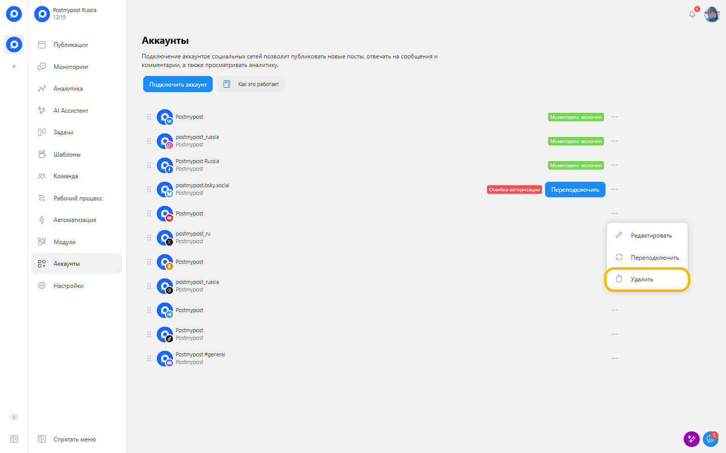 Аккаунтты жобадан қалай жоюға болады