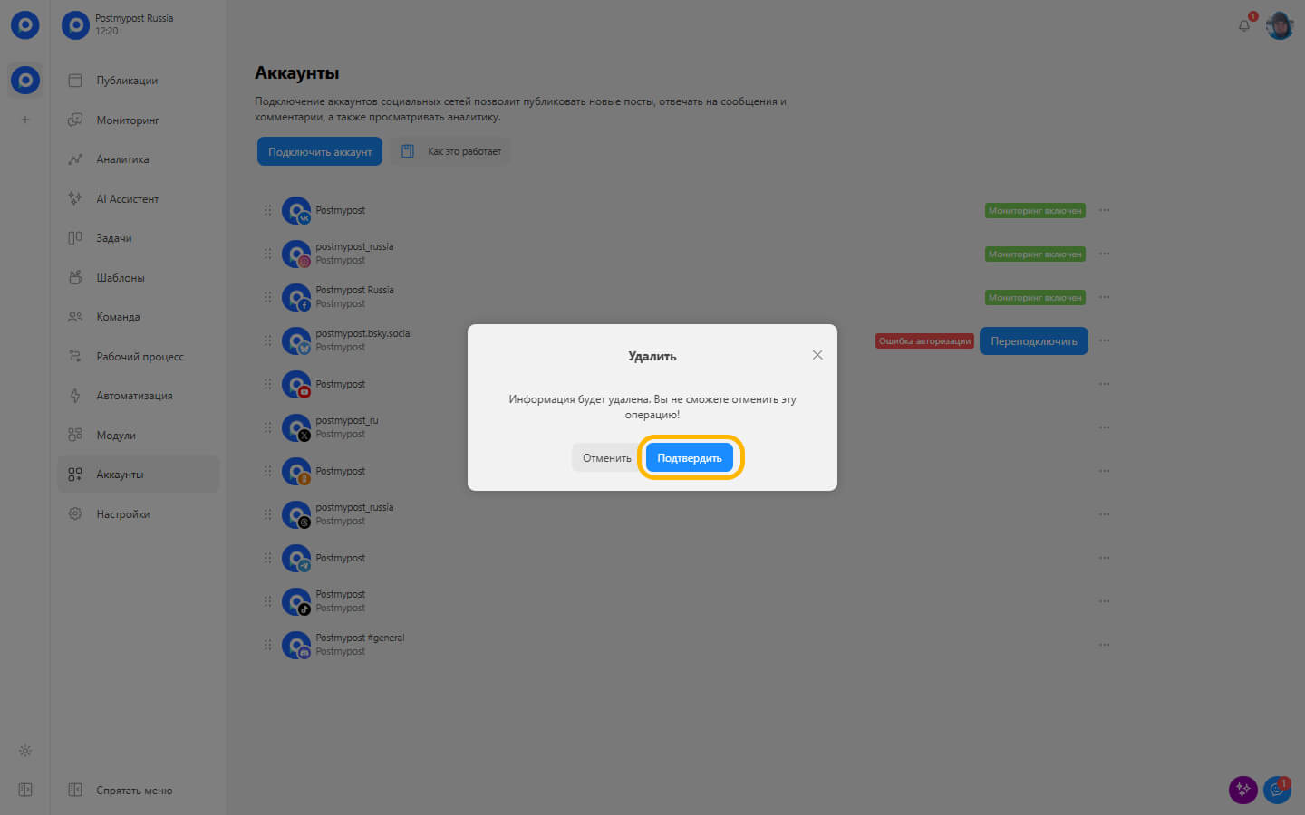 Бұл әрекет аккаунтты жобаңыздан мәңгілікке жояды. Назар аударыңыз, бұл операцияны қайтару мүмкін емес.