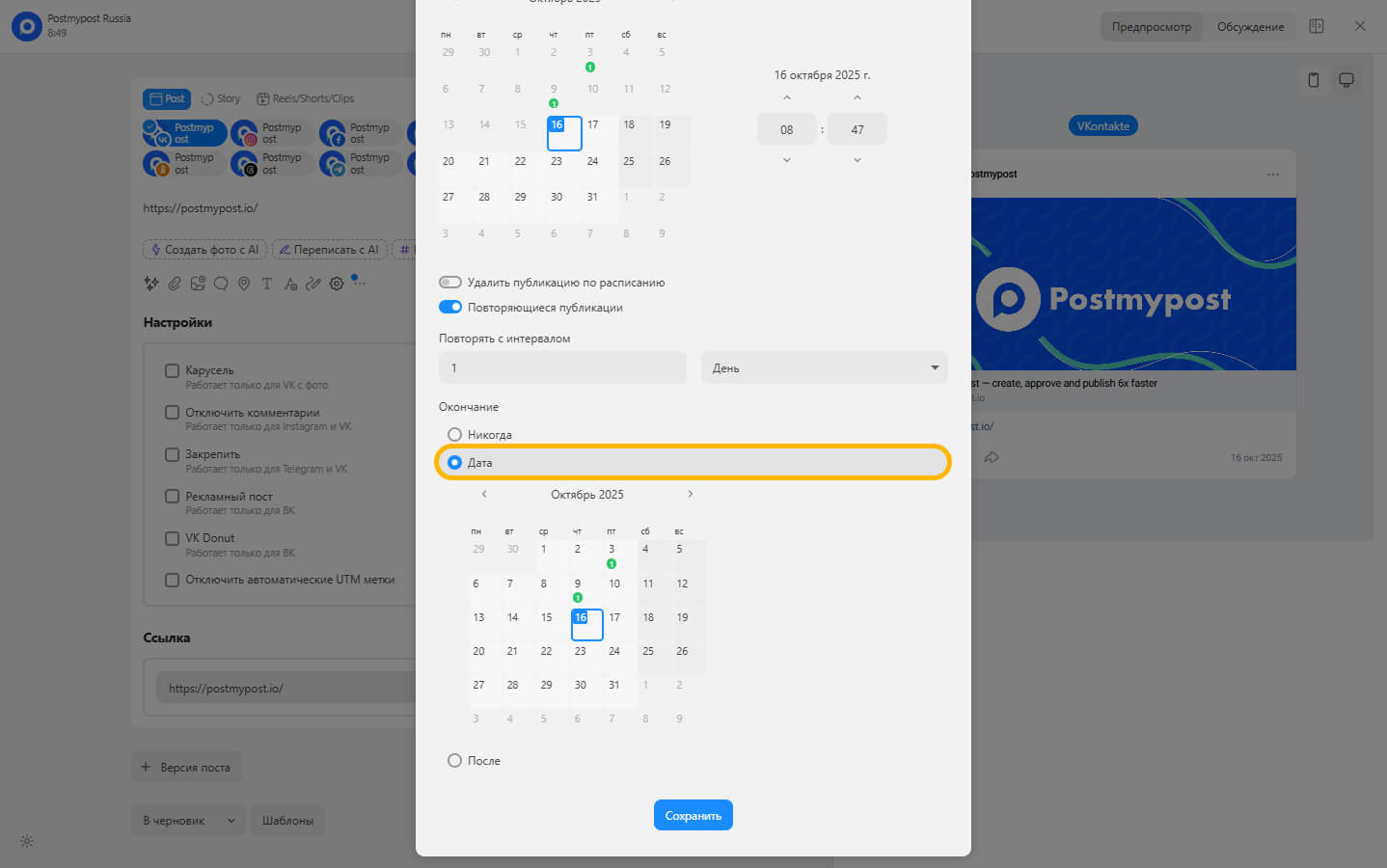 - Жариялауды қашан аяқтайтынын таңдаңыз күн бойынша
