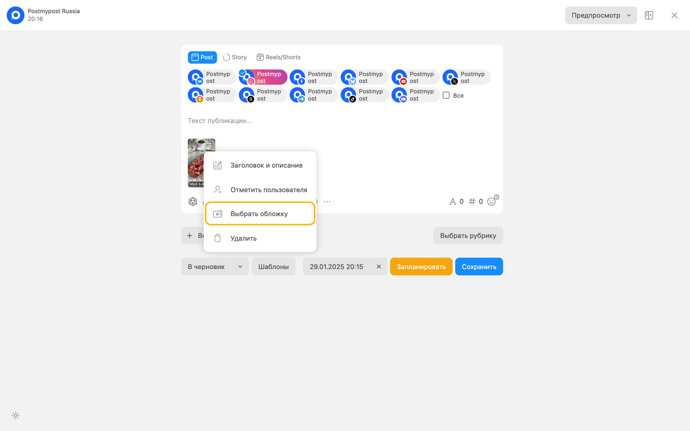 | Әлеуметтік желілер | Мұқабасы бар бейнені жариялау |