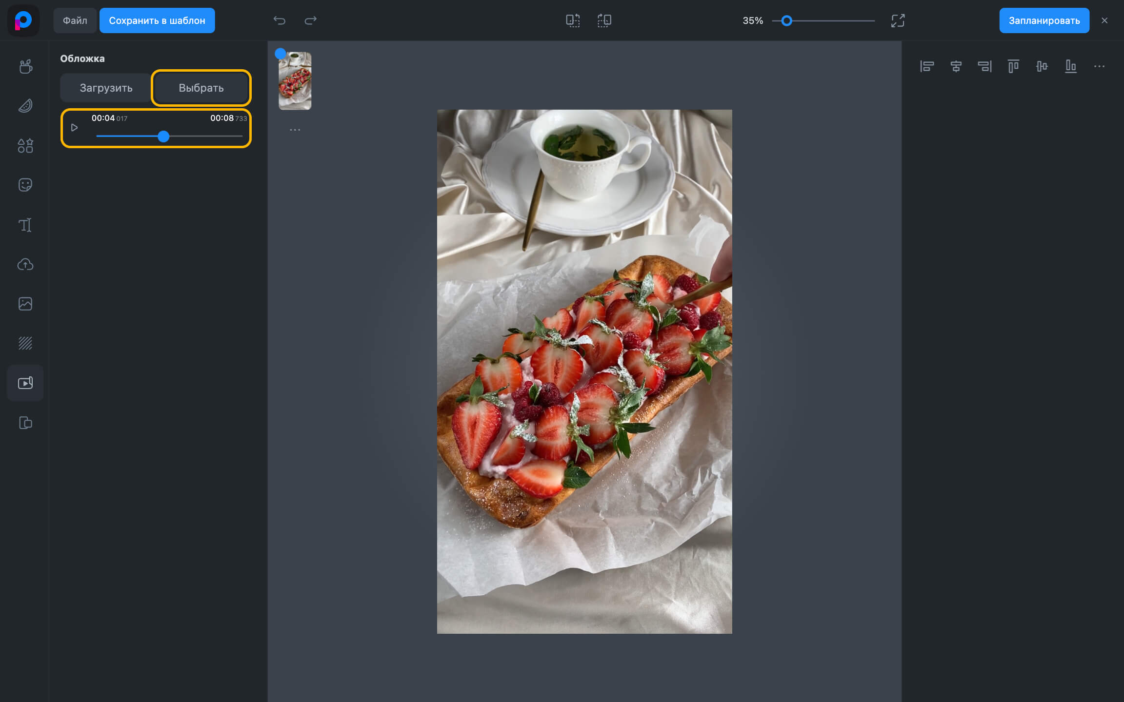 - Жариялау редакторында жүктелген бейнеге меңзерді апарыңыз.