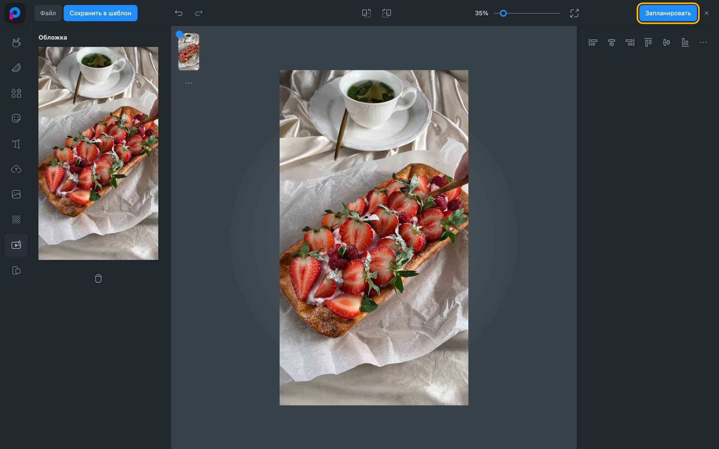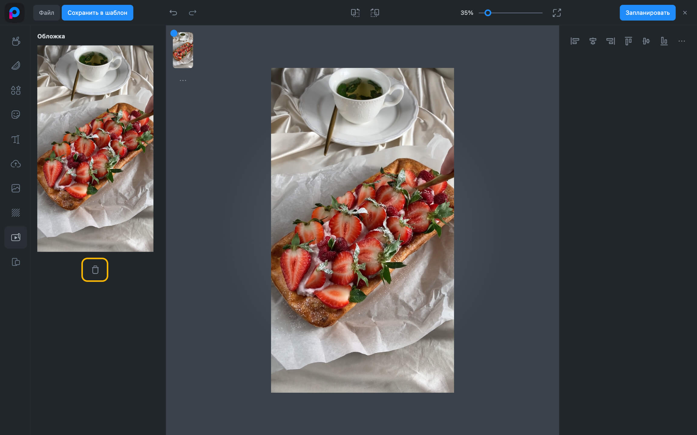 - Таңдалған немесе жүктелген мұқаба редактордың сол жақ блогында пайда болады. Егер оны ауыстыру қажет болса, алдымен ағымдағысын жойып, жаңа жүктеңіз.
