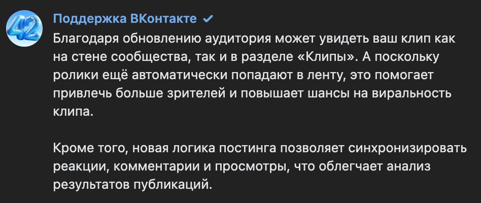 Мы подготавливаем и отправляем во ВКонтакте файл и параметры публикации так, чтобы они соответствовали требованиям алгоритма «Клипов». Но окончательное решение всегда остаётся за ВК — мы не можем его переопределить.